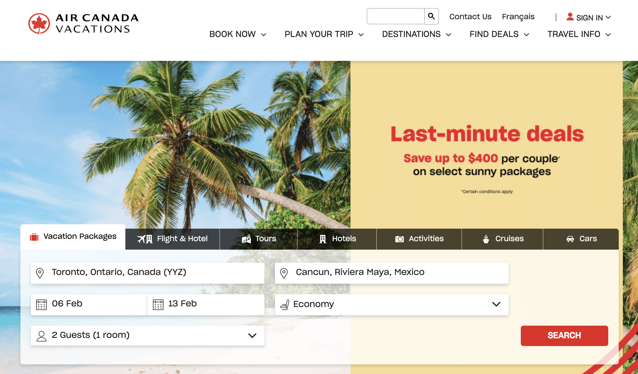 Step 1. Head over to Air Canada Vacations website and sign in with your Aeroplan credentials