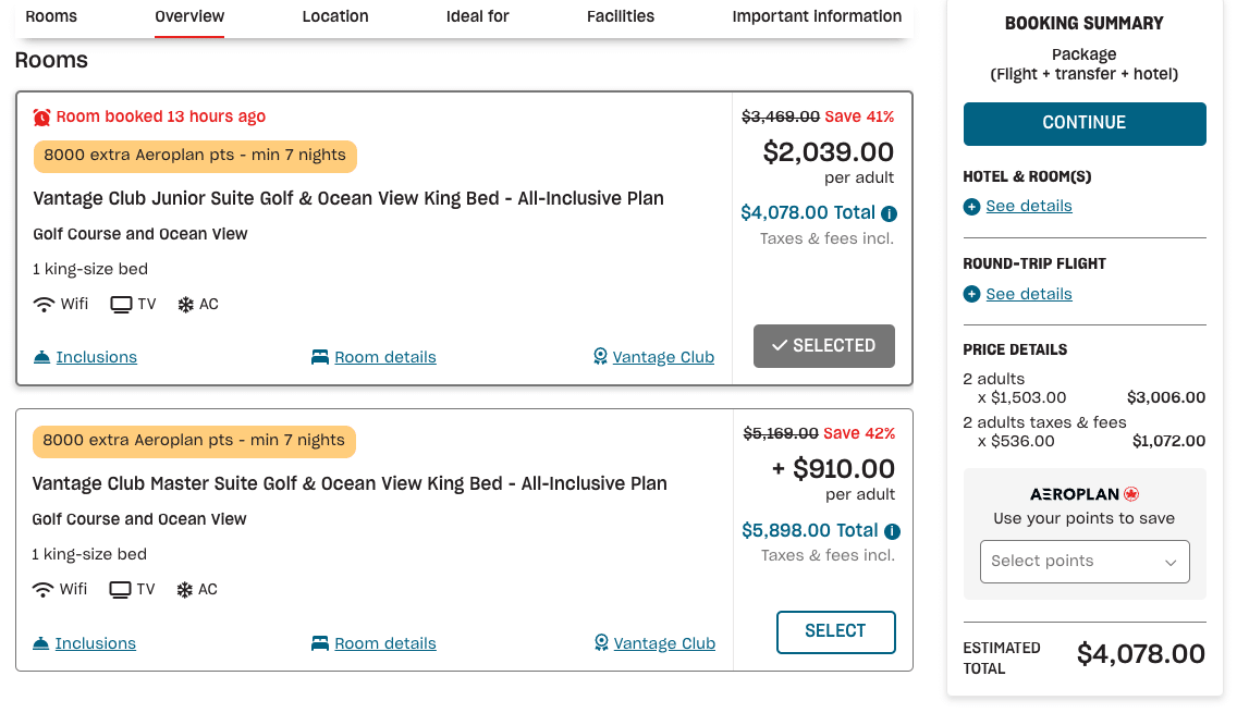 With the above in mind, we think that redeeming Aeroplan points for Air Canada Vacations is a great option if you’re looking for a hassle-free experience and want to minimize out-of-pocket costs for a packaged vacation.